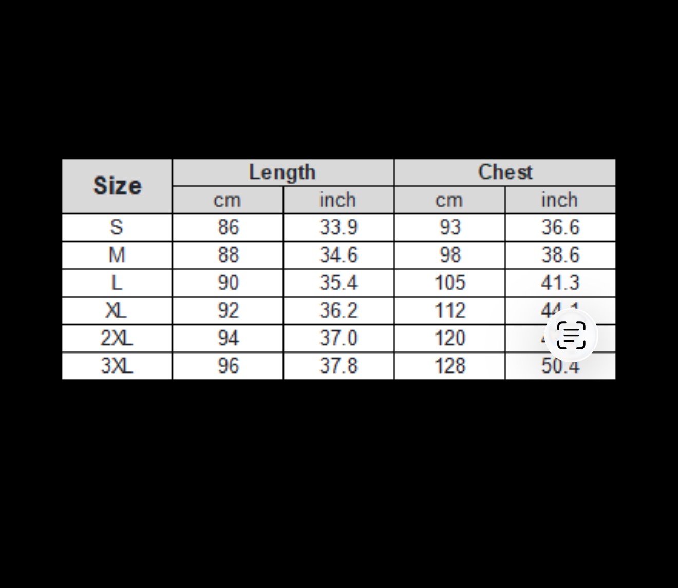 • Sizes: S,M,L,XL,2XL,3XL. Calculate your size from the measurement chart below please.