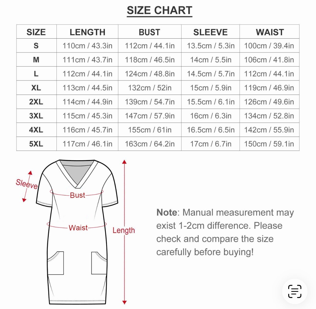 • Sizes: S, M, L, XL, 2XL, 3XL, 4XL, 5XL.